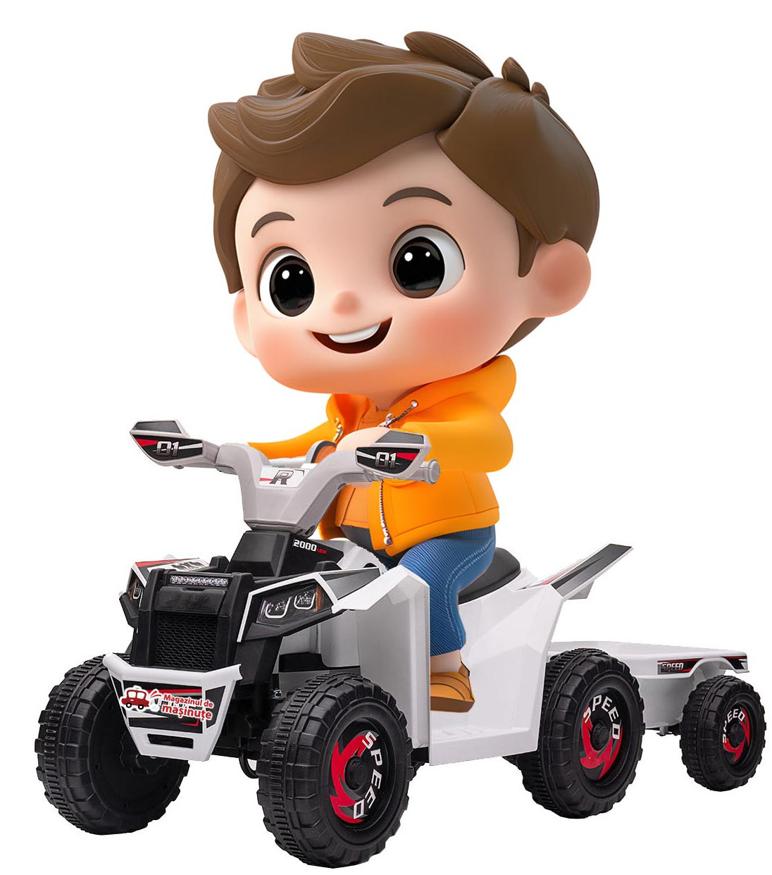 Da, acest ATV are și remorcă cu care puteți plimba jucăriile copilului!