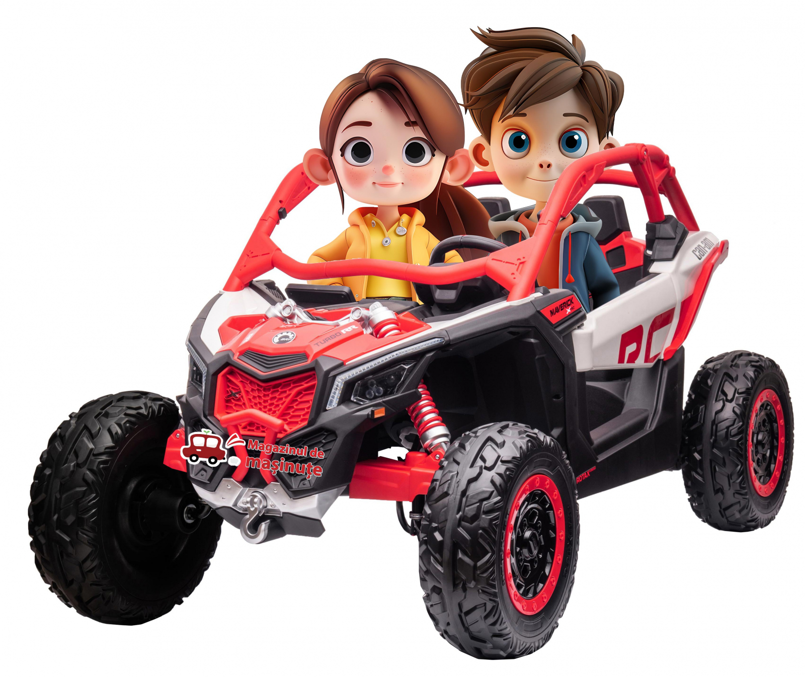 Mașina anului 2022 a ajuns în sfârșit în România! Uimitorul ATV Maverick RC, copie a modelului Can-Am, cea mai bună mașină de teren din lume! Acest model este F-A-N-T-A-S-T-I-C! Cu suspensii reale pe roțile spate care sunt din spumă EVA, copilul tău se va simți foarte confortabil. Dar stai! Copii tăi! Da! Maverick este prevăzut cu 2 scaune din piele ecologică care suportă 2 copii simultan cu o greutate cumulată de maxim 60 kilograme! Mai mult, scaunele șoferului este reglabil în adâncime. Scaunele sunt prevăzute cu centuri de siguranță în 3 puncte!