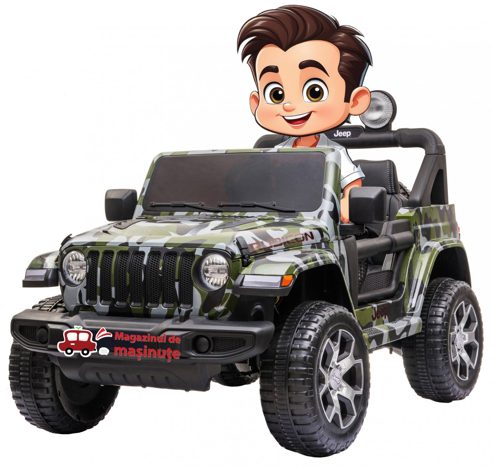 Noua mașinuță electrică Jeep Wrangler Rubicon cu licență oficială acum în oferta noastră în exclusivitate! Această mașinuță este bine construită și are o serie de caracteristici uimitoare. Mașinuța este echipată cu pornire din cheie cu 3 căi (din cheie se controlează și luminile exterioare). Include lumini LED frontale și spate, ba chiar și două proiectoare desupra, astfel încât copilul dumneavoastră să se poată bucura de o experiență de conducere autentică. Navigarea cu această mașinuță electrică este ușoară datorită anvelopelor din cauciuc EVA. Pentru a face această călătorie și mai realistă, modelul nostru vine cu portiere care se deschid precum și un spațiu de depozitare prin deschiderea capotei.