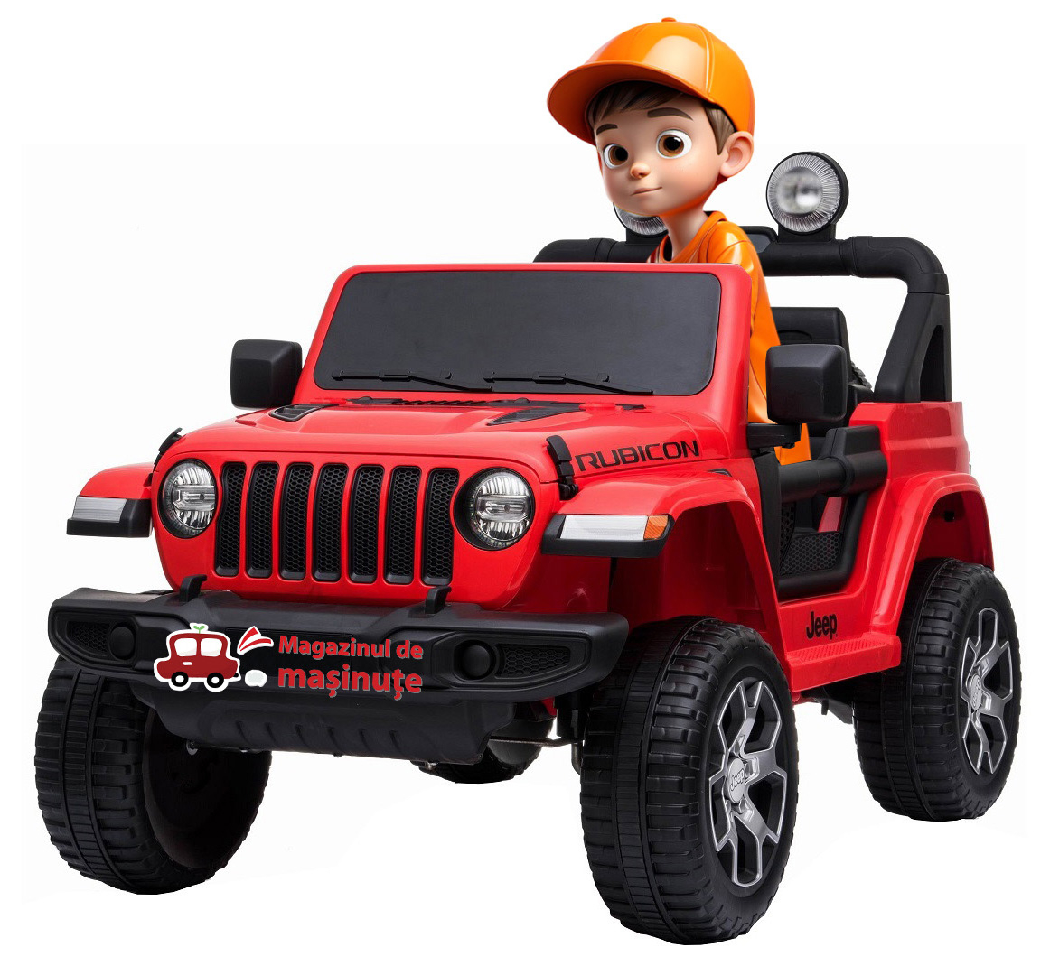 Noua mașinuță electrică Jeep Wrangler Rubicon cu licență oficială acum în oferta noastră în exclusivitate! Această mașinuță este bine construită și are o serie de caracteristici uimitoare. Mașinuța este echipată cu pornire din cheie cu 3 căi (din cheie se controlează și luminile exterioare). Include lumini LED frontale și spate, ba chiar și două proiectoare desupra, astfel încât copilul dumneavoastră să se poată bucura de o experiență de conducere autentică. Navigarea cu această mașinuță electrică este ușoară datorită anvelopelor din cauciuc EVA. Pentru a face această călătorie și mai realistă, modelul nostru vine cu portiere care se deschid precum și un spațiu de depozitare prin deschiderea capotei.