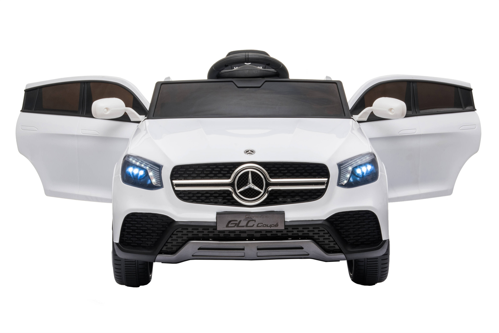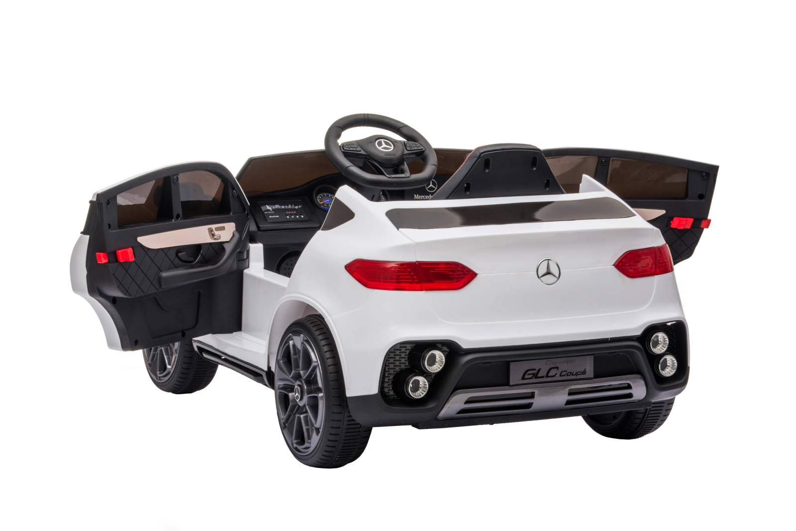 Pentru cei îndragostiti de marca Mercedes, aceasta frumoasa masinuta electrica pentru copii nu va trece neobservata datorita aspectului sau real. Modelul pentru copii Mercedes GLC coupé edition cu baterie de înalta performanta de 12V este o copie perfecta a masinii reale, cu un design perfect pentru ca cei mici sa se simta bine si fericiti conducând aceasta frumoasa masina electrica. Mercedes GLC Coupé Edition este fabricata din materiale de înalta calitate, este o masina foarte sigura pentru cei mici datorita centurii de siguranta, telecomenzii cu care parintii sa poata directiona vehiculul în orice moment si pornirii progresive pentru a evita socurile. În plus, aceasta masina are un extra mult apreciat, un mâner cu roti pentru transport usor în cazul în care bateria se descarca sau pur si simplu pentru a o muta confortabil.